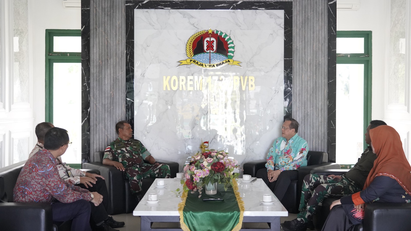 Waspadatv.co.id || Nabire, Papua Tengah– Komandan Korem 173/Praja Vira Braja (Brigjen TNI Frits W.R. Pelamonia) menerima kunjungan audiensi dari Kepala Kantor Wilayah Direktorat Jenderal Pajak (DJP) Papua beserta rombongan, bertempat di Makorem 173/PVB, Jalan Kusuma Bangsa, Distrik Nabire, Kabupaten Nabire, Provinsi Papua Tengah. Selasa, 4 November 2025