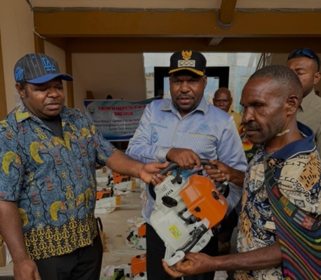 Penyerahan bantuan, yang mencakup mesin sensor kayu (chainsaw) profesional dan seperangkat alat tukang lengkap, dilakukan langsung oleh Bupati Intan Jaya, Aner Maisini, di halaman Kantor Bupati. Acara ini menandai langkah konkret daerah untuk mengintegrasikan masyarakat dalam rantai pembangunan fisik di Intan Jaya.