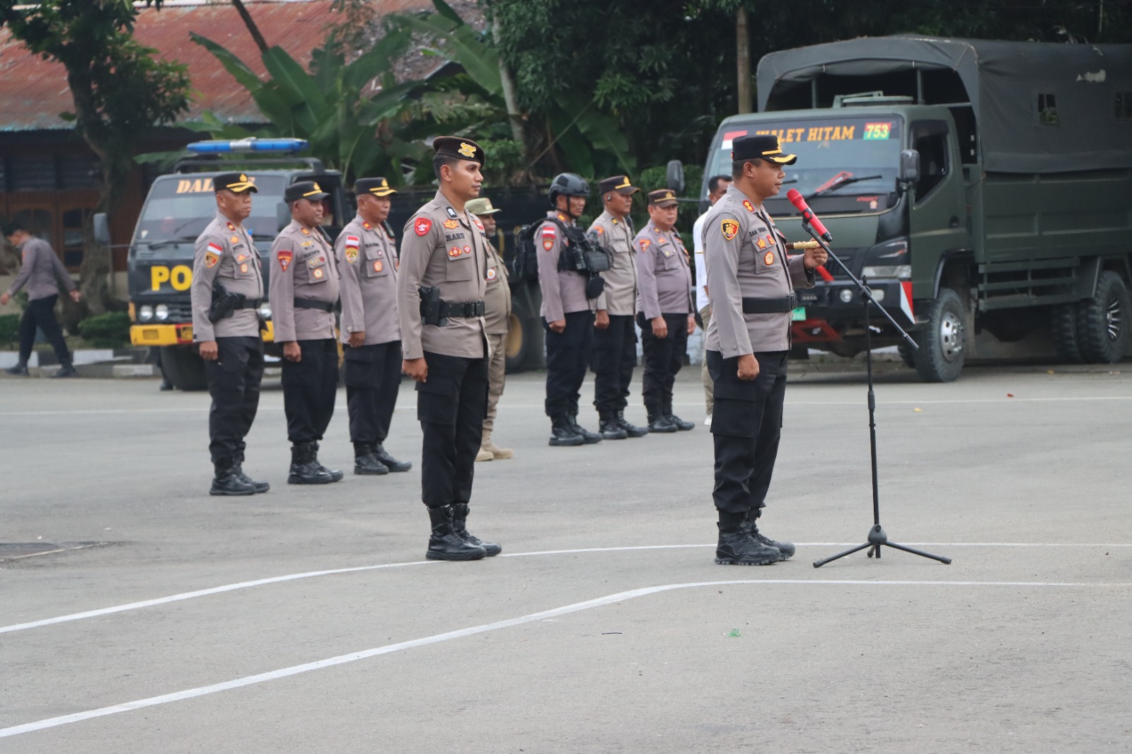 Apel yang dimulai pukul 17.10 WIT ini dipimpin langsung oleh Kapolres Nabire AKBP Samuel D. Tatiratu, S.I.K., dan menandai mobilisasi pasukan gabungan yang mencerminkan sinergi antar-lembaga yang kuat.