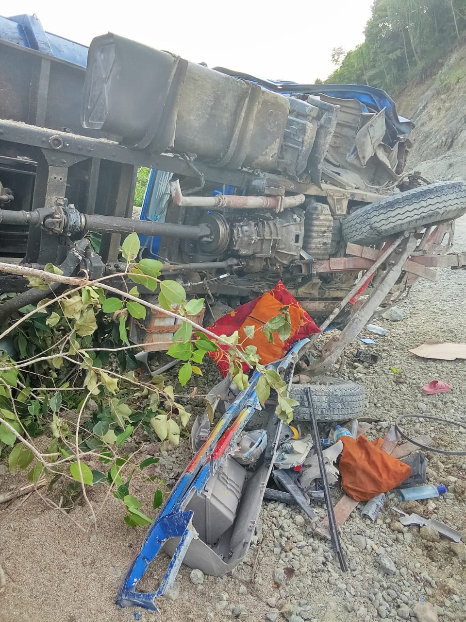 Waspadatv.co.id || Halmahera Tengah –  Sebuah kecelakaan tunggal kembali terjadi di lintasan ekstrem turunan Gunung Patani, Halmahera Tengah, pagi ini (28/10/2025). Sebuah unit truk terbalik tepat di tikungan tajam pinggir jalan Desa Loman, Kecamatan Patani Selatan, sekitar pukul 07.00 WIT.